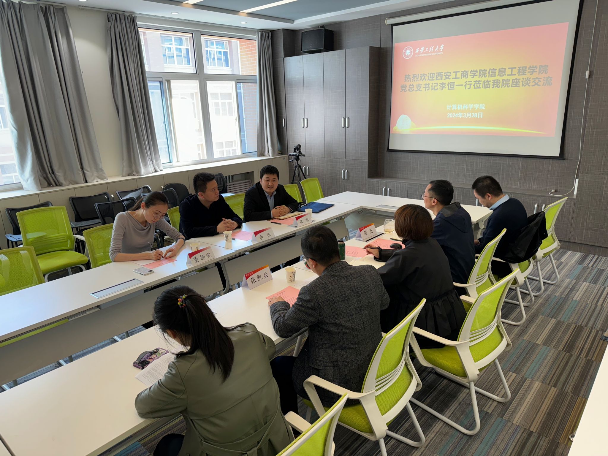 2024年3月28日下午,西安工商学院信息工程学院党总支书记李恒、信息工程学院执行院长张琳、信息工程学院团总支书记董静雯等一行3人到我校beat365在线唯一官网进行交流座谈。beat365在线唯一官网党委书记赵雪曼、副院长陈亮、张凯兵等参加了座谈会。