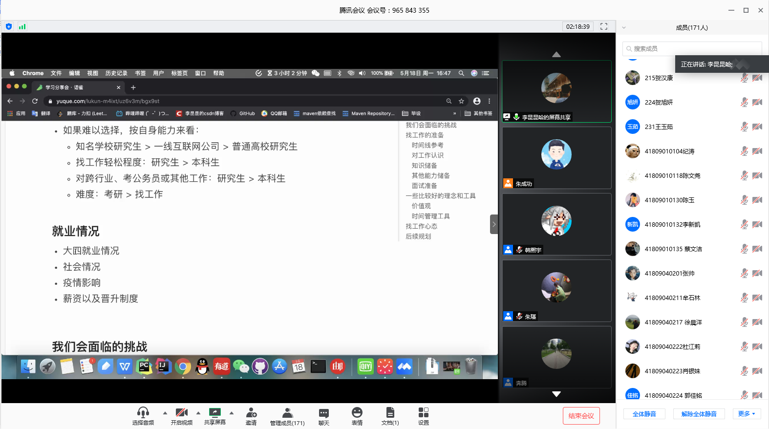 16级软件工程专业、学生第六党支部、党员卓越班李昆洪同学从自我介绍、考研or就业、就业情况(岗位、薪资、制度)、我们会面临的挑战、找工作的准备时间线(知识储备、其他能力储备、面试准备等)、较好的理念、找工作心态和后续规划等内容进行了全面而详尽的分享,他鼓励大家就业准备一定要趁早且充分,努力提升自身能力,一份完美的简历,一次充分准备的面试是一份好工作的基础,最后他希望所有人都能找到心仪的工作。