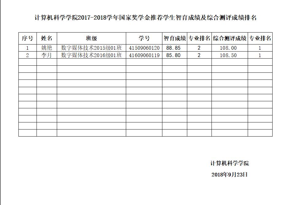 公示时间:2018年9月23日-2018年9月27日。公示地点:7号楼427办公室外走廊公示栏内。公示期间如有异议,请于2018年9月27日之前以书面形式向学院反馈。