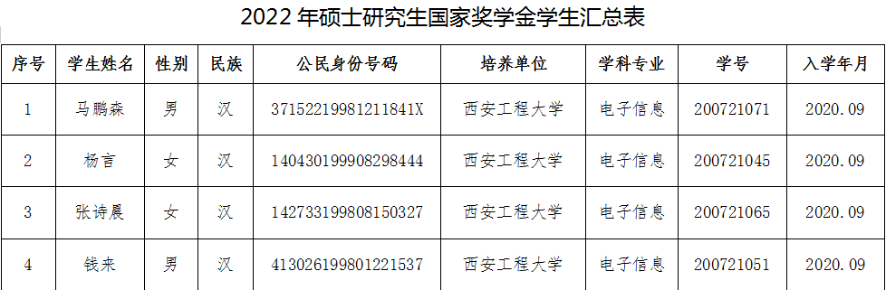 beat365在线唯一官网2021-2022学年研究生国家奖学金评定结果公示