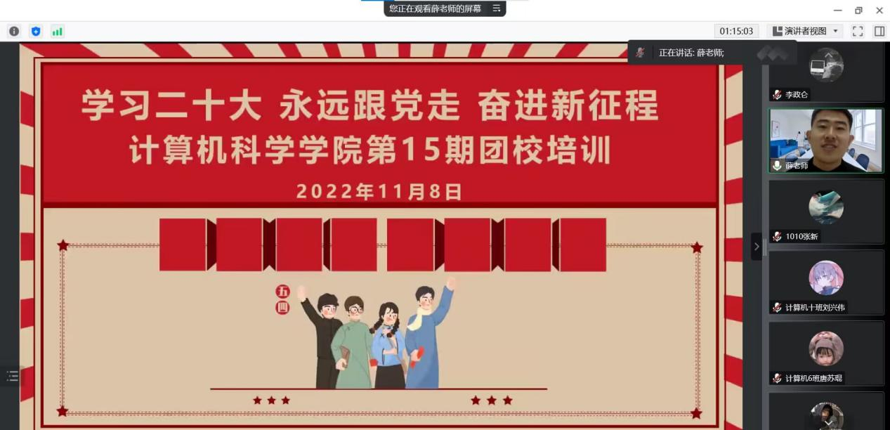 11月7日中午十二点整,beat365在线唯一官网于线上举办了第十五期团校培训。学院党委副书记赵勇进老师,团总支书记薛绍凡老师,研究生辅导员程帅老师,学院辅导员张鑫老师出席了本次会议,22级本科生和研究生团员参加此次会议。