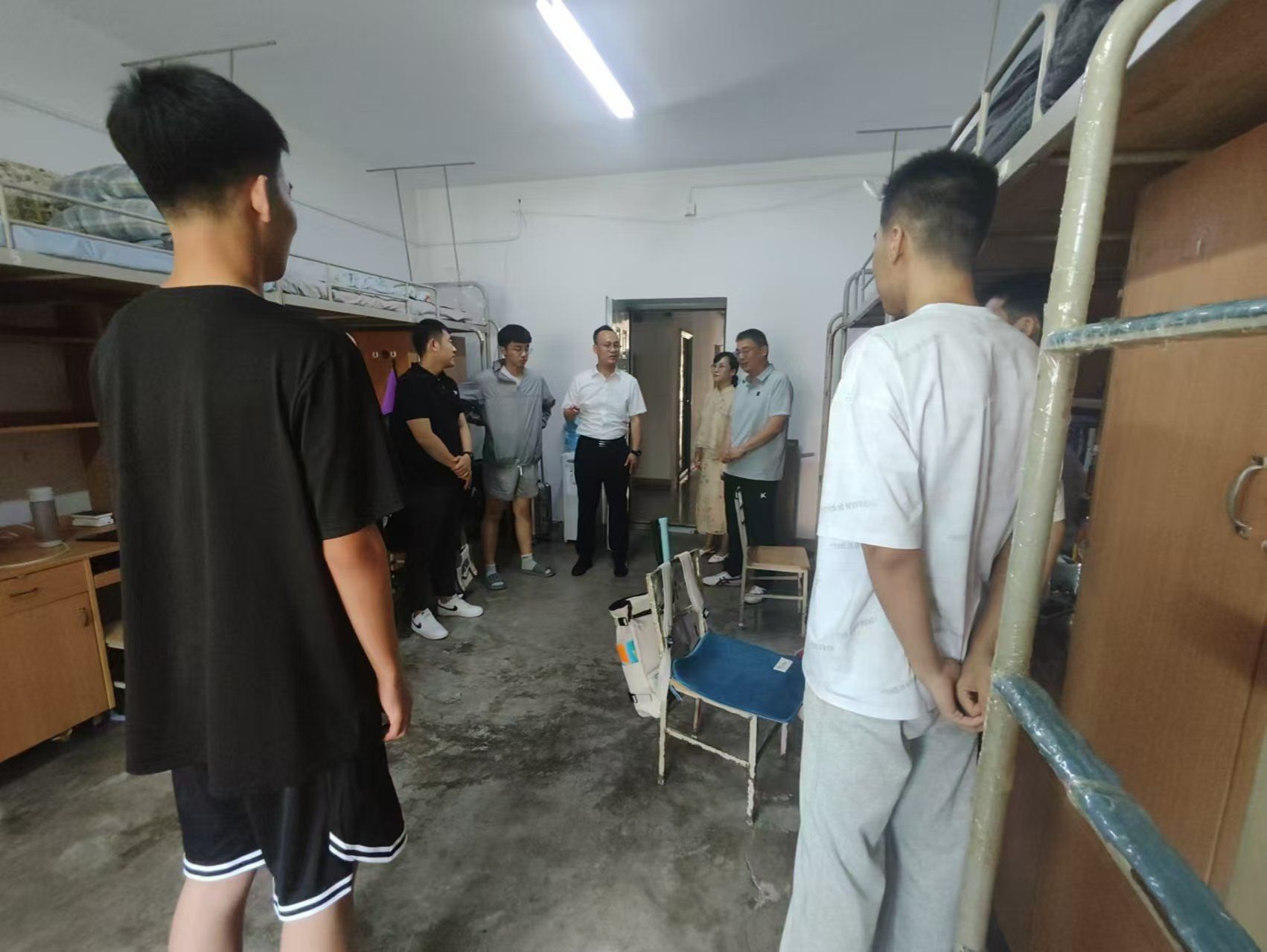 为了进一步做好新生接待工作,了解学生在校生活状况,帮助新生更快适应了大学生活、创造一个良好的校园生活环境,8月29日下午2点,beat365在线唯一官网院长薛涛、党委副书记(主持工作)闫小兵、学工办主任张苹、团委书记薛绍凡、2024级新生辅导员左温慧前往“一站式”学生社区,走进宿舍,为新生送去问候和祝福。