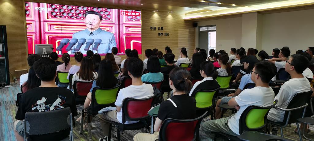 7月1日上午,中共中央在北京隆重举行庆祝中国共产党成立100周年大会,中共中央总书记、国家主席、中央军委主席习近平发表重要讲话。beat365在线唯一官网党委理论学习中心组成员、辅导员、行政人员、研究生计算机科学与技术学硕党支部、研究生电子信息专硕党支部全体成员在临潼7号楼614报告厅共同收听收看了庆祝大会盛况直播。
